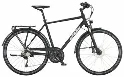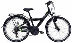 Alu-Rahmen, Suntour XCE-28 Federgabel, 21-Gang Tourney Schaltung mit EZ-Fire Schalthebeln, STYX Tretlager, Shimano Nabendynamo, DBM-2 Hohlkammerfelgen, Tektro V-Bremsen, STYX Sattelstütze, Downhill-Lenker und Vorbau, 30 Lux LED-Lampe, Standrücklicht, Hinterbauständer, Schutzbleche, integrierter Gepäckträger mit Monkeyload Stecksystem