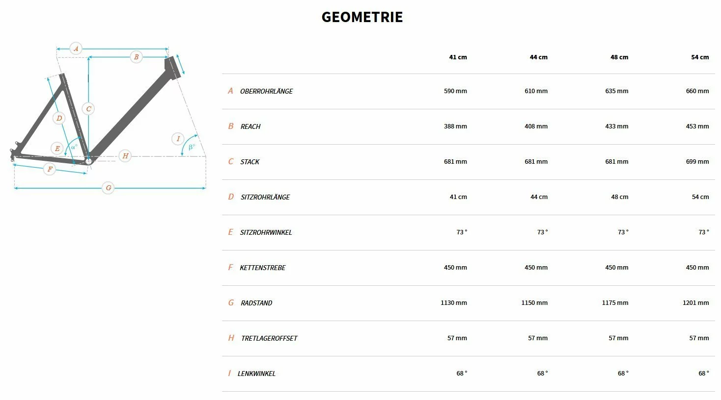 6061 Alu-Rahmen, XCR-Air-HLO Federgabel, Deore 11-Gang Schaltwerk, Schalthebel und Zahnkranz (11-51 Zähne), Tektro HD-M390 Scheibenbremsen mit 180mm Bremsscheiben, Ryde Disc-30 Hohlkammerfelgen, Bosch Performance-CX Mittelmotor 85Nm, 400Wh (Standard), 500Wh oder 625Wh (Aufpreis) Akku 36V Li-Ion, STYX Sattelstütze, Veetire Crown Gem 27½ x 2,60 Reifen, CCS-Vorbau, Monkeylink-Connect-Halter vorne und hinten