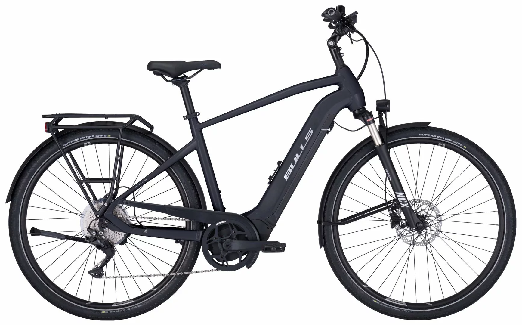 Hydroforming Alu-Rahmen mit Tapered Steurrohr, NCX-D-LO Federgabel mit 100mm Steckachse (75mm Federweg), Deore Schaltwerk, Schalthebel und Zahnkranz (11-42 Zähne), Tektro HD-T390 Disc-Bremsen mit 2,3mm Scheiben (160/180mm), Ryde Taurus 2000 Disc Felgen, Formula CL71 / CL26 Naben, Brose Drive-S Mag Fit-Eco Mittelmotor 250W / 75Nm (90Nm als Option), 555Wh, (740Wh oder 925Wh Akku als Option), Beleuchtung über den Akku, 50 Lux Lampe, TFT-Compact Display 2 Zoll, Supero Optima Safe Reifen 50-622, Ergon Griffe, Monkey-Load Gepäckträger