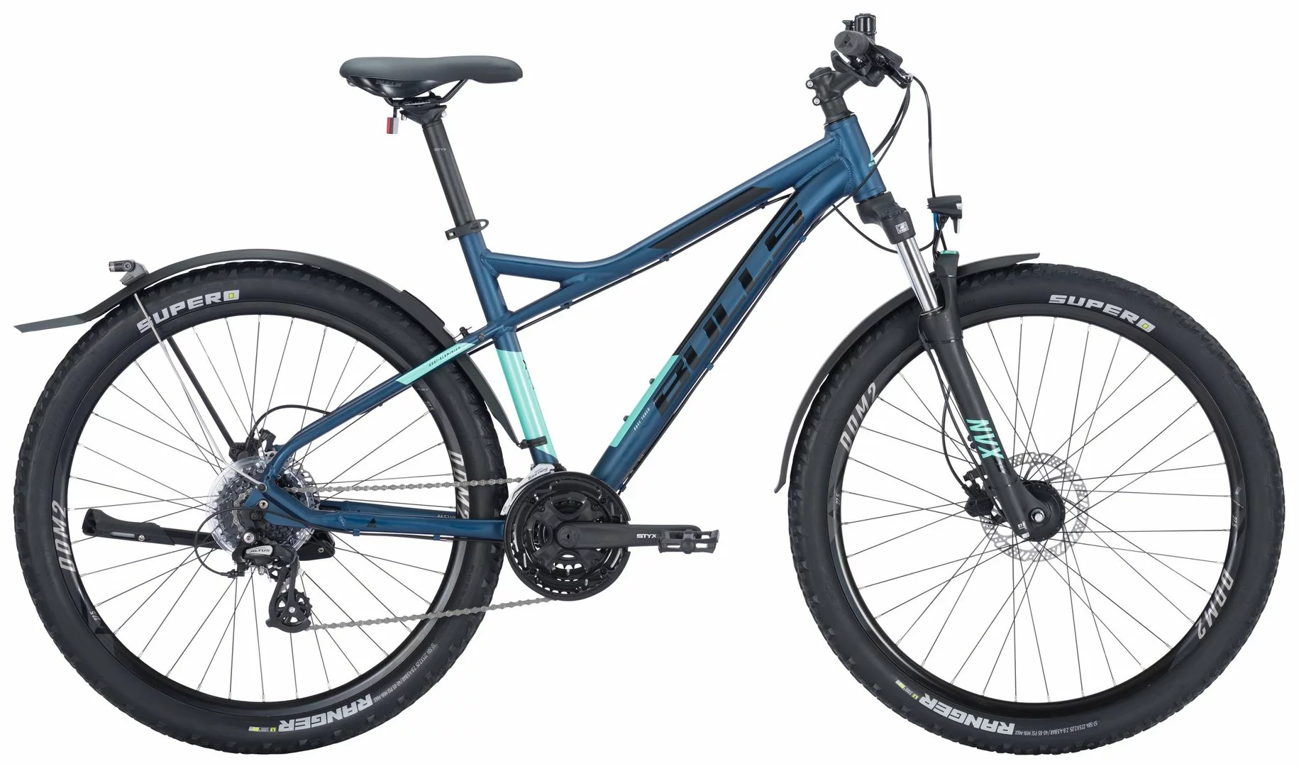 6061 Alu-Rahmen, Suntour NVX-30-DS Federgabel einstellbar, 24-Gang Altus Schaltung und Schalthebel, Tourney Umwerfer, STYX Kurbeln, Shimano Nabendynamo, DDM-2 Alu- Hohlkammerfelgen, Tektro HD-M275 hydraulische Disc-Bremsen (160/160mm), STYX Sattelstütze, Downhill-Lenker und Vorbau, 30 Lux LED-Lampe, Standrücklicht auf dem Schutzblech, verstellbarer Hinterbau-Ständer, Schutzbleche (hinten mit Strebe)