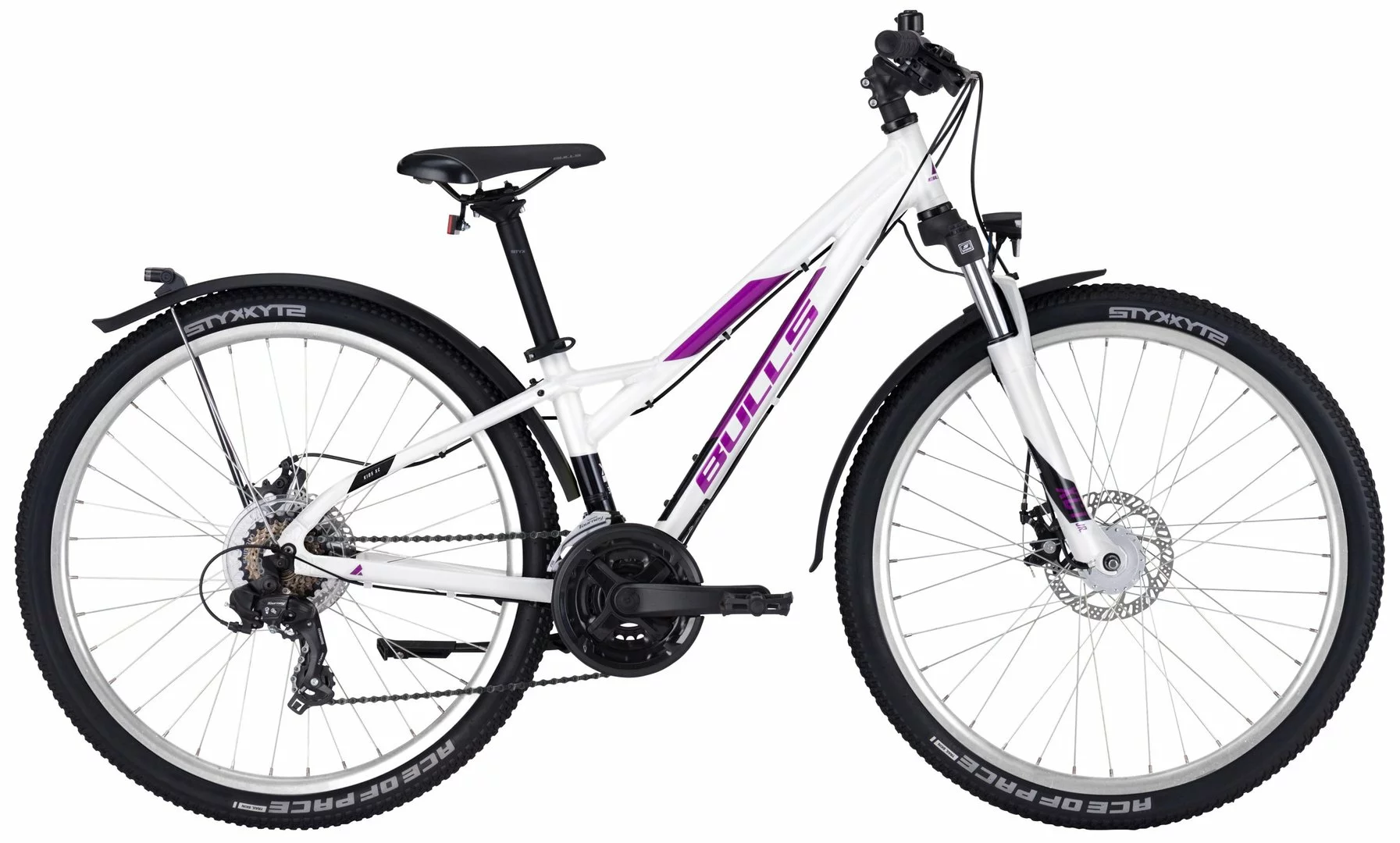 6061 Alu-Rahmen mit abgesenkten Oberrohr, Suntour XCT-DS Federgabel einstellbar, 21-Gang Tourney Schaltung mit EZ-Fire Schalthebeln, Aluminium Kurbeln (24/34/42 Zähne), Shimano Nabendynamo, DDM-2 Alu-Hohlkammerfelgen, Tektro MD-M280 Disc-Bremsen (160/160mm), STYX Sattelstütze, Downhill-Lenker und Vorbau, 30 Lux LED-Lampe, Standrücklicht, Ständer