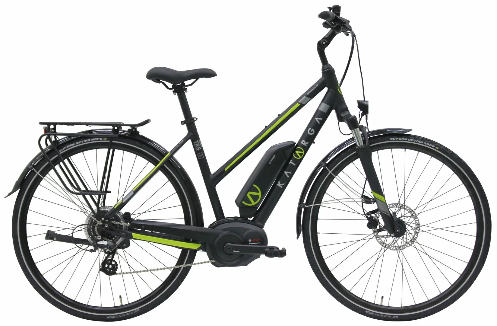 7005 Alu-Rahmen mit innenverlegten Kabeln, NEX-E25-DS Federgabel, Altus 8-Gang Schaltwerk und Schalthebel, Tektro HD-M275 Disc-Bremsen (160/180mm), DDM-2 Hohlkammerfelgen, verstellbarer Lenkervorbau, Bosch Performance-Line Mittelmotor mit 60Nm Drehmoment, 400Wh oder 500Wh (Aufpreis) Akku, Supero Optima Safe Reifen 40-622, 15 Lux LED-Lampe, I-Rack Gepäckträger