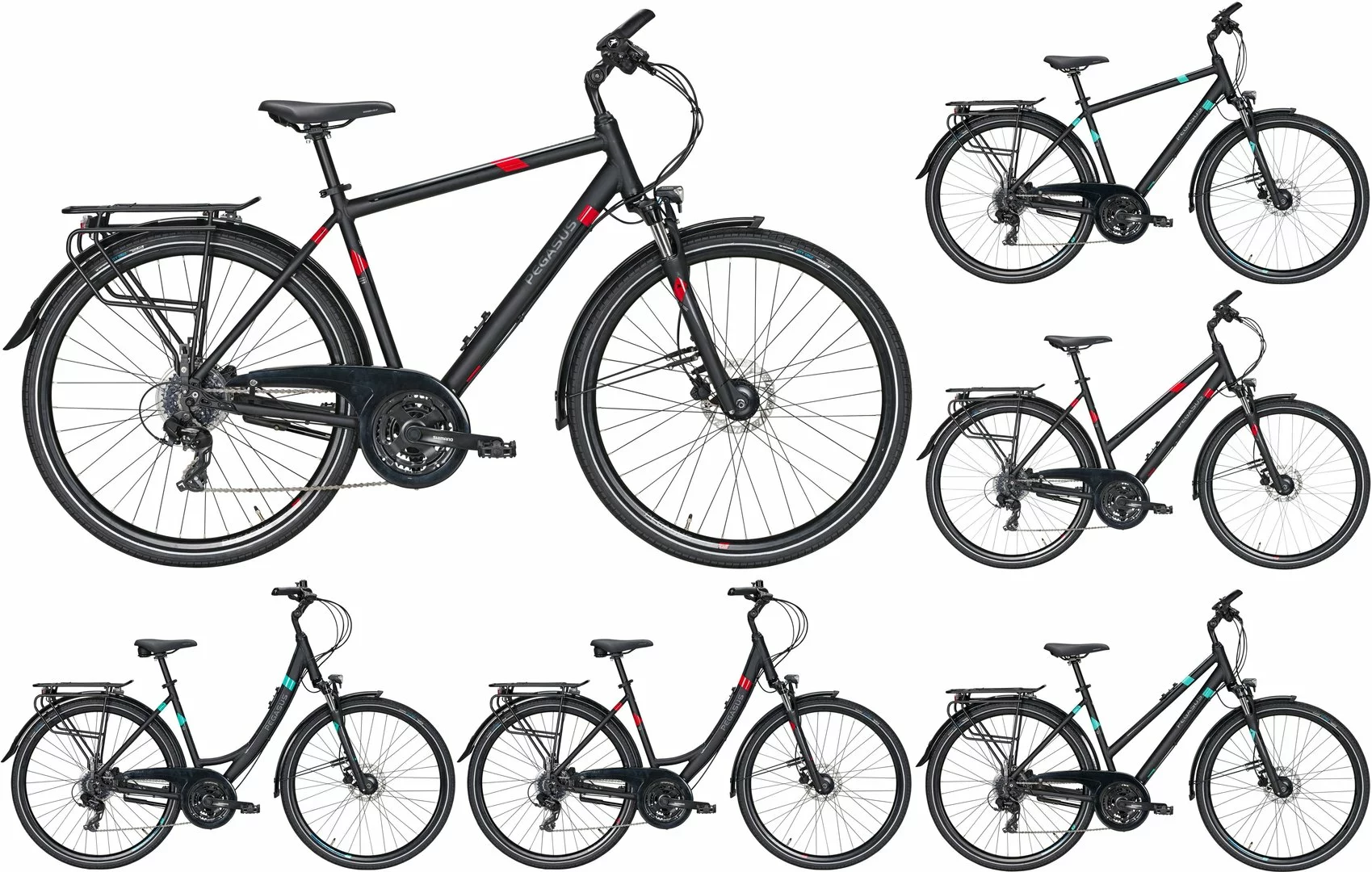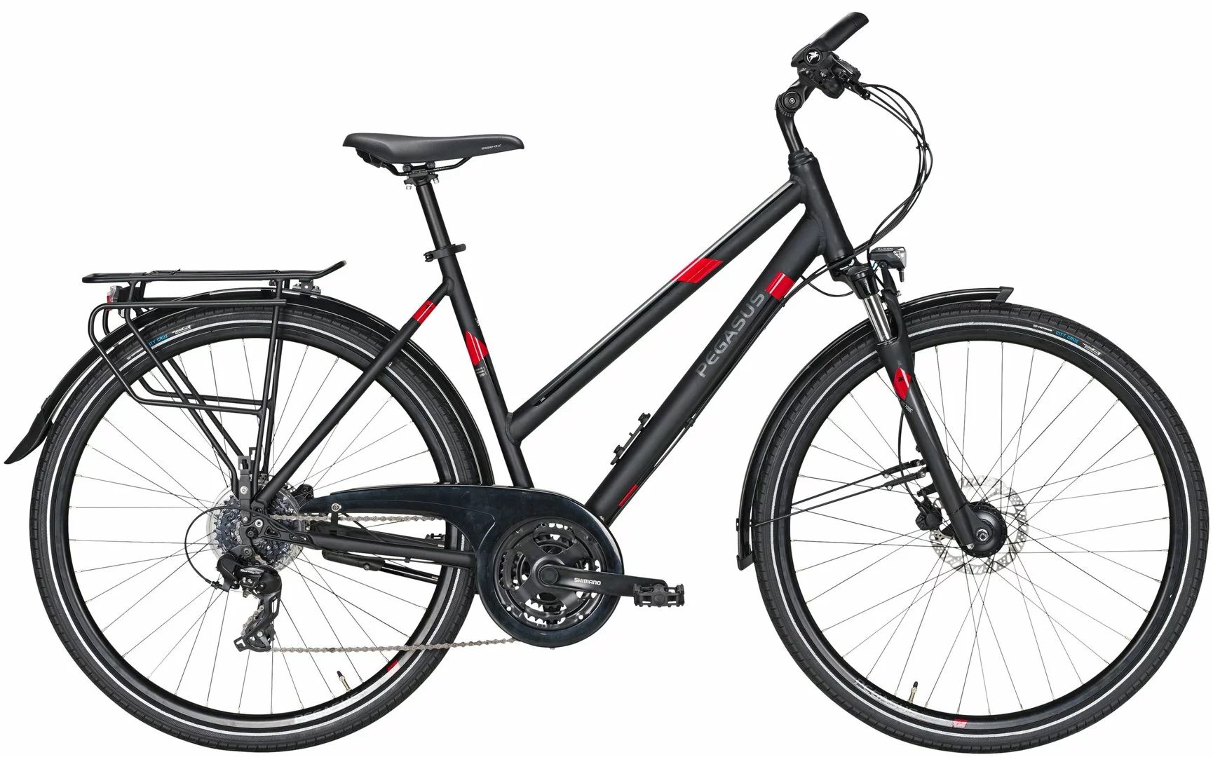 6061 Alu-Rahmen, Suntour NEX-DS einstellbare Federgabel, Altus Schaltwerk und Schalthebel Tourney Umwerfer und TY301 Kurbeln, Tektro HD-T275 Scheibenbremsen, DDM-2 Hohlkammer-Felgen, Vee Tire City Cruz 44-622, verstellbarer Vorbau, Ergo-Griffe mit Bar-Ends, Nabendynamo, 30 Lux LED-Lampe, Standrücklicht, einstellbarer Ständer
